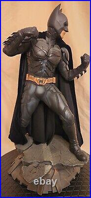 Introducing an exclusive collectible for fans of The Dark Knight franchise. This 1:4 scale premium format statue of Batman is a must-have for any superhero genre collector. Made of high-quality resin, this multicolor statue is a perfect representation of the iconic character from the movie. The statue is an original licensed reproduction and comes in its original packaging. It features the exclusive version of Batman and is a great addition to any collection.